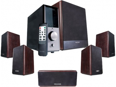 Microlab Н-600D Модель Н-600D - это один из лучших вариантов для создания домашнего кинотеатра и прослушивания музыкальных композиций. Качественный объемный звук позволит Вам полностью погрузиться в мир музыки, фильмов, компьютерных игр. Отличный дизайн системы позволит ей превосходно вписаться в любой интерьер. 360 Вт: 5 х 50 Вт + 110 Вт RMS 45 - 22 000 Гц